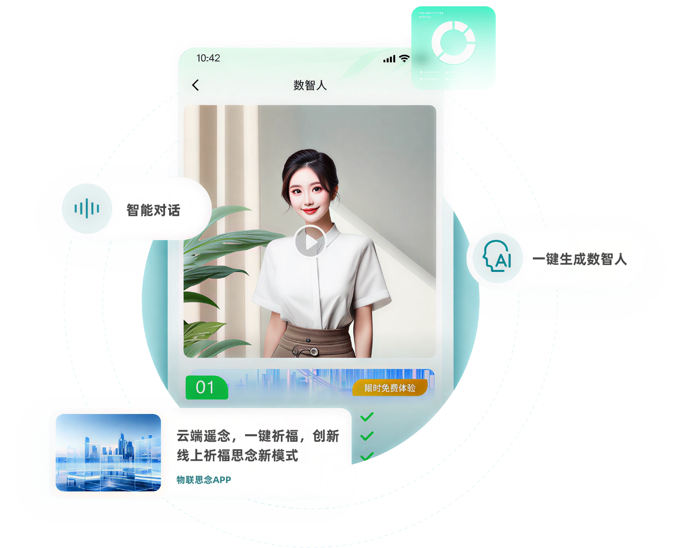 基于生成式人工智能技术生成的数字产品,用户个人的照片、视频、语音等信息,通过机器学习、超算力计算生成用户的数字分身。在元宇宙里,数智人用当今留存的音容笑貌,用未来时代的思维、语言和后人进行沟通、交流。